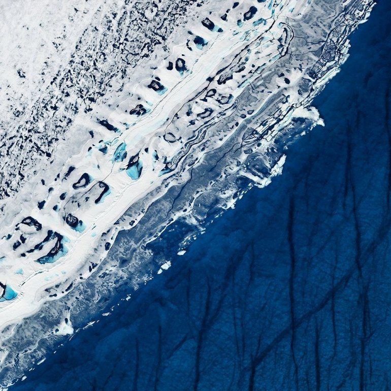 Этот потрясающе красивый пейзаж является одновременно ужасающим. За прошлые несколько десятилетий темп таяния значительно усилился, а эти темно-синие озера занимают все большую часть ледникового покрова.