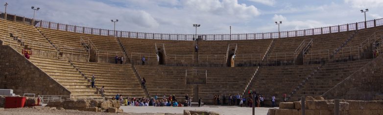 Первое, к чему проходят на территории парка, — древнейший в Израиле театр. С высоты последних рядов открывается потрясающий вид. Внизу, на сцене, вам не придется специально искать точку с идеальной акустикой — вокруг нее уже соберутся испанские туристические группы и вместе с гидом будут петь Ave Maria.