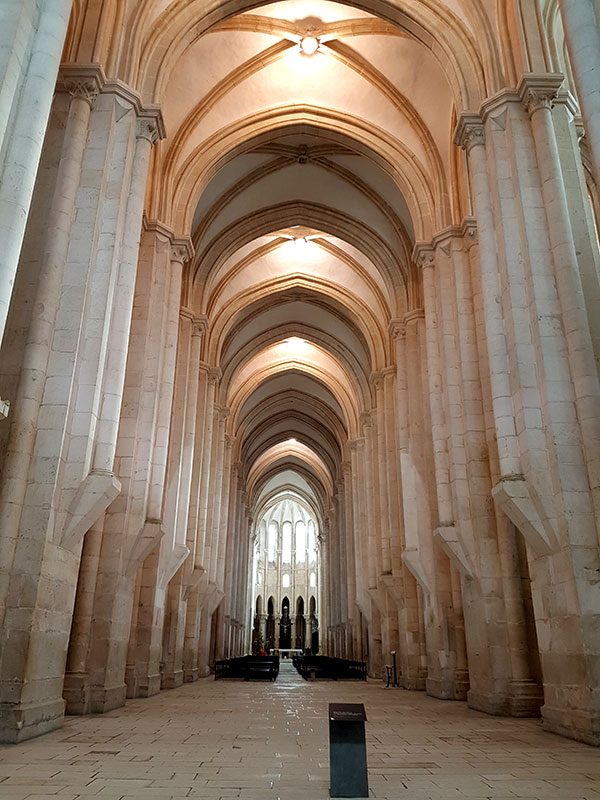 Монастырь располагался на земле, которую король подарил монашескому ордену Цистерцианцев – за то, что те усердно молились за его победу в битве за город Сантарень. Поэтому в церкви (которая, кстати, считается самой большой готической церковью на Пиренейском полуострове), как и во всех сооружениях цистерцианцев, отсутствуют украшения, картины, золото и роскошь. Сами монахи жили в простых деревянных домах в течение нескольких десятилетий, так как монастырские здания возвели лишь к 1223 году. Огромный храм на территории комплекса был завершен в 1252 году, а в конце XIII века добавлен готический монастырь, известный как Обитель тишины.