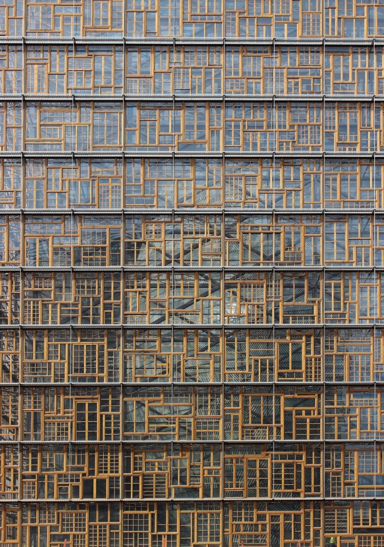 Новые фасады собраны, как лоскутное одеяло, из старых оконных рам, привезённых со всей Европы. Дело в том, что, следуя рекомендациям Европейского Союза об энергосбережении, многие старые здания меняют свои оконные рамы на двойные стеклопакеты. В русле идей устойчивого развития было решено восстановить некоторые из тех миллионов старых, но ещё пригодных оконных рам, и использовать их в этом проекте. Эти новые фасады стали одновременно практическим и символическим заявлением о вторичном использовании традиционных строительных элементов, в то же время отражая многообразие европейской культуры.