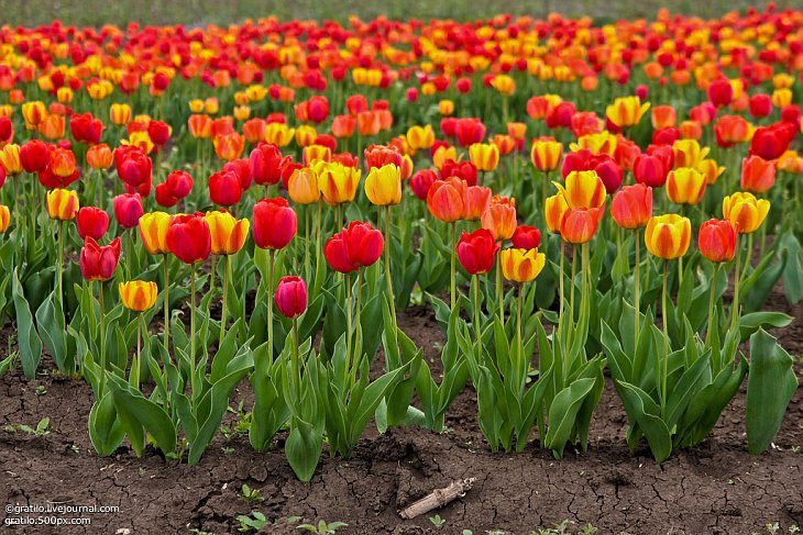 Крымчане обогнали голландцев не только площадью, но и коэффициентом цветения — в 1,5 раза. Этот показатель рассчитывается очень просто: количество проросших цветов из 100 посаженных луковиц. В Польше и Прибалтике выходит 60 тюльпанов, у голландцев — 65, а в Крыму — 95: