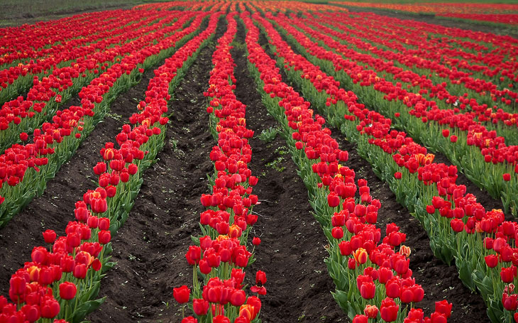 Сейчас же тюльпанное поле несколько меньше, но все равно вызывает восхищение. Его площадь сейчас около 12 гектаров. Хотя в лучшие времена достигала 200 га: