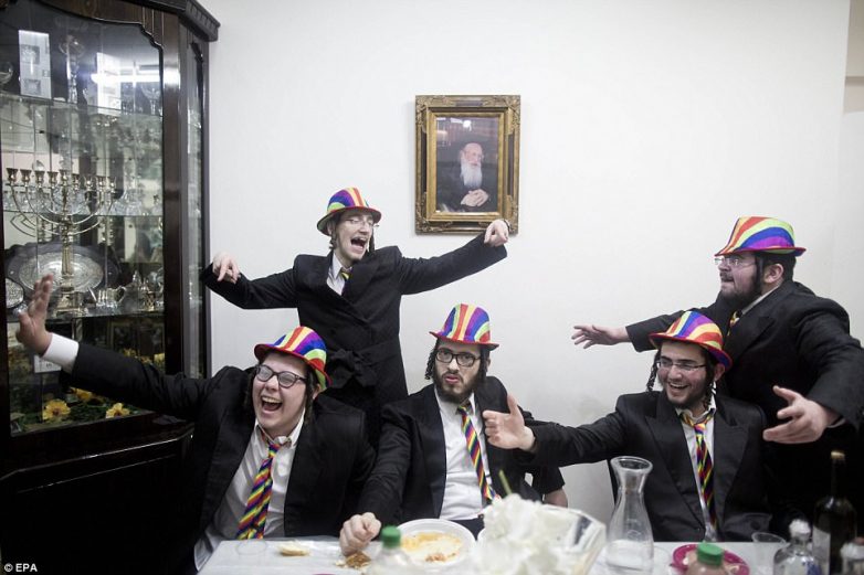 Накануне Пурима ортодоксы не едят и не пьют, зато потом, когда наступает праздничный вечер, отрываются на полную катушку. Звучат песни, дом сотрясается от танцев, и кругом царит непередаваемая атмосфера веселья и счастья.