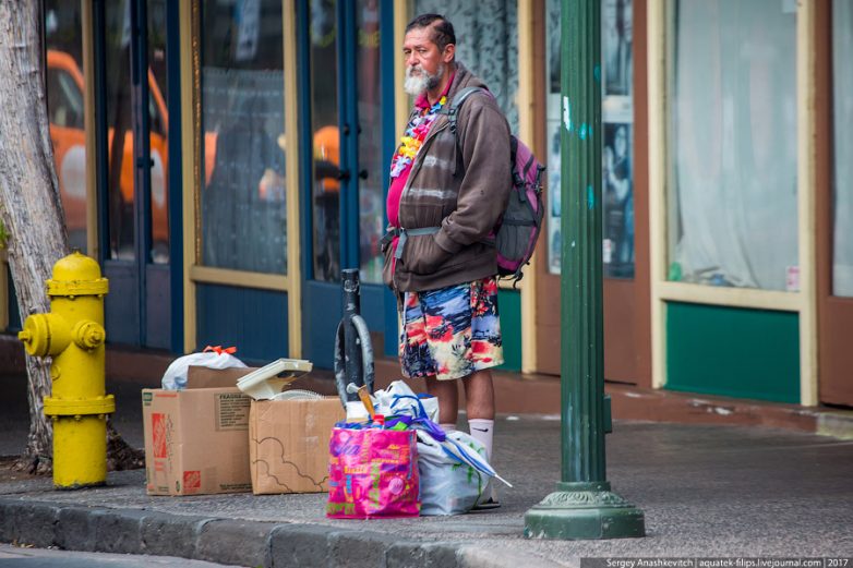 Понятно, что бомжам невероятно кайфово на Гавайах. И солнце тебе, и океан, и никаких холодов и морозов. Можно вообще не париться по поводу места, где жить, т.к. жить можно абсолютно везде — не замерзнешь. Но, несмотря на высокогуманное отношение властей к этим товарищам, экономически их эта ситуация устраивает всё меньше, ведь бомжи на острове плодятся быстрее, чем прирастает население…