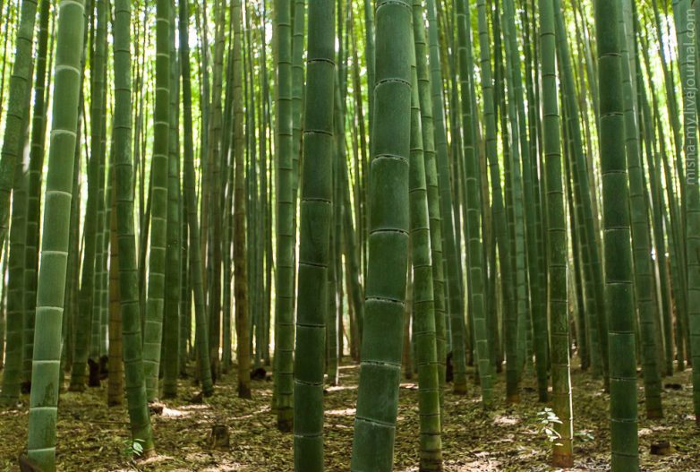 Под легким ветром бамбуковые стволы перестукиваются с приятным звуком.