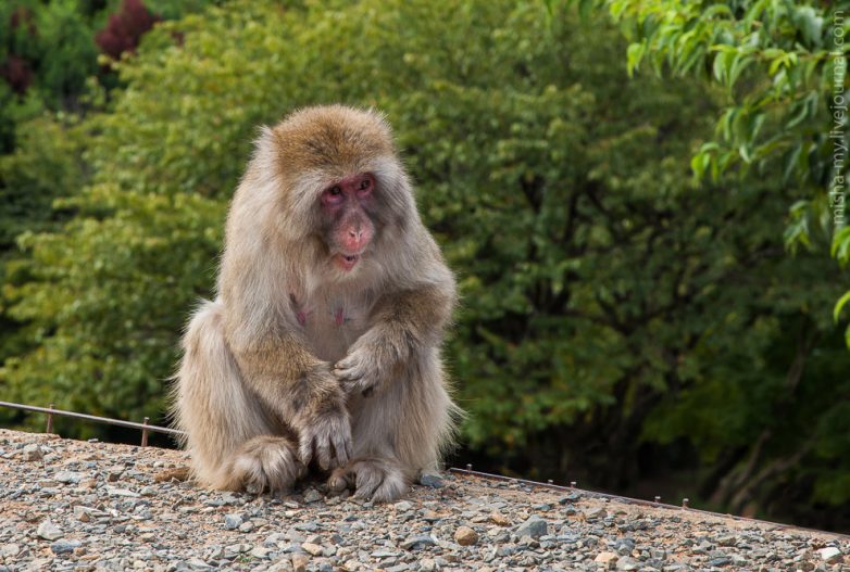 Сразу за мостом находится вход в парк обезьян Iwatayama. Чтобы добраться до обезьян придется минут десять попыхтеть в гору.