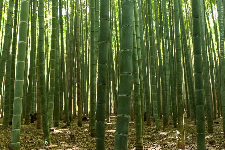 Сперва мы отправились в бамбуковый лес. В той части, где мы были, особо свободно ходить не давали, только по дорожкам.