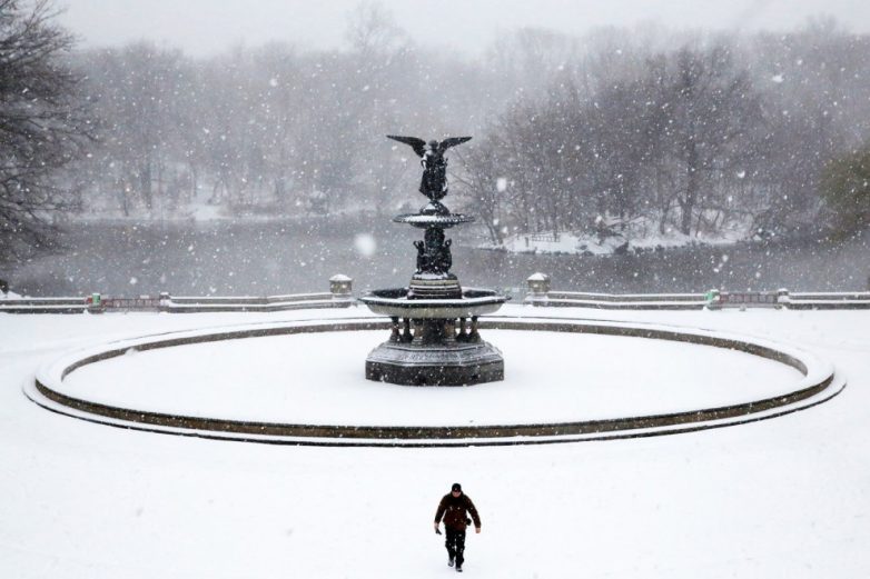 Снежный шторм бушует в Центральном парке в Нью-Йорке, 14 марта 2017 года.