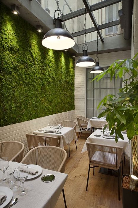 Сочетание натуральных материалов и конструкций в ресторане Ato.
