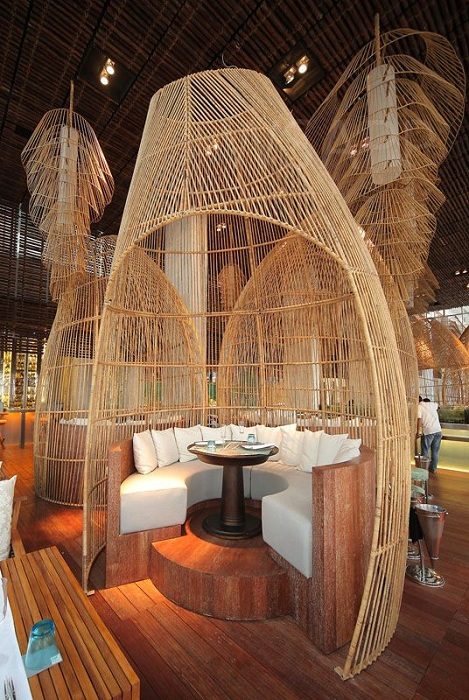 Необычные и интересные перегородки, которые создают уютную атмосферу в одном из прекрасных ресторанов на острове Бали.
