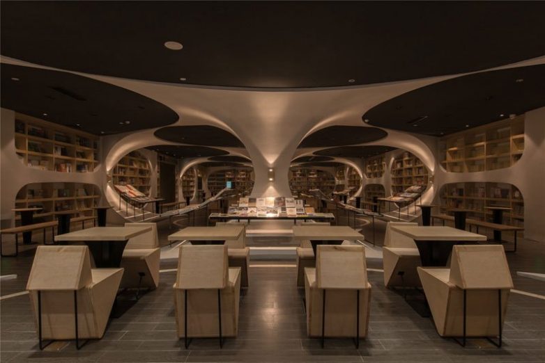 Плавные очертания и мягкое освещение интерьера настраивают на литературные приключения. Книги отображаются по-разному, чтобы привлечь внимание, а подобрав нужную, можно удобно устроиться в большой гостиной. Здесь даже есть павильон с детской литературой для подрастающего поколения книголюбов.