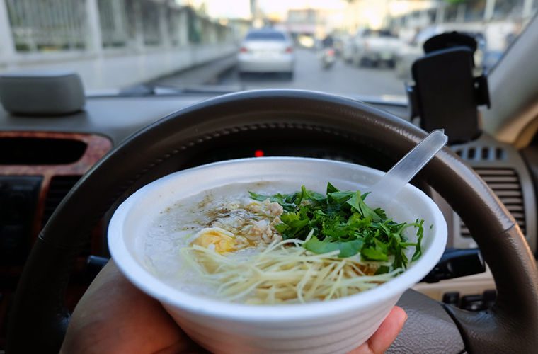 Собираясь сесть за руль автомобиля, не забудьте как следует подкрепиться. Правила дорожного движения запрещают водителям есть и пить во время движения. Если вдруг пересохнет в горле или желудок начнет регулярно напоминать о себе, а остановиться, согласно ПДД, будет нельзя, несвоевременное утоление пищевых потребностей обойдется вам в €85.