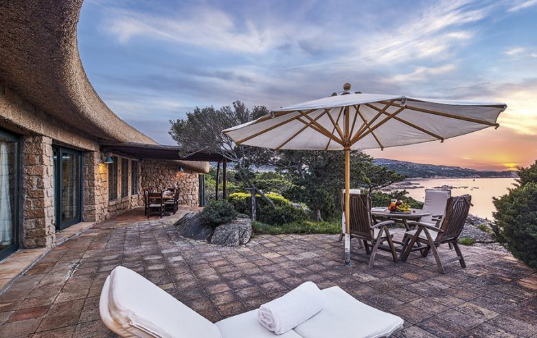 Вилла в природном заповеднике (строительство на побережье запрещено в 1960 году) Коста-Смеральда поблизости от гольф- и яхт-клубов работы американского архитектора-шестидесятника Питера Шнека, построившего на Сардинии по заказу Ага Хана пятизвездочный курорт, отражает идеологию своего создателя, воспевавшего природную красоту Италии и с особым тщанием подбиравшего материалы. Одноэтажный дом со сложной извилистой крышей будто прячется в старом прибрежном лесу, идеально вписываясь в ландшафт. Центр дома — просторная гостиная с большим камином и захватывающим видом на частный сад площадью 2700 кв. м и частный пляж. Три спальни с ванными комнатами. Предыдущий владелец виллы обновил обстановку, добавив современное понимание роскоши в суховатый интерьер 1960-х. В саду появился большой бассейн и новые патио.