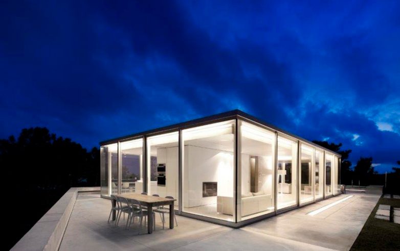 Дизайнер Брюно Априкум выстроил двухуровневую виллу, превратив верхний ярус в стеклянный дом, почти как в триллере. Стеклянный дом стоит в окружении средиземноморских сосен, а белокаменная терраса ведет к океану. Все внутренние поверхности дома, включая пять спален и кухню, выкрашены в белый цвет. Хозяйская и гостевые спальни расположены на нижнем, более закрытом, интимном уровне виллы. Дом оснащен солнечными батареями, подогреваемыми полами, сигнализацией и камерами наблюдения.