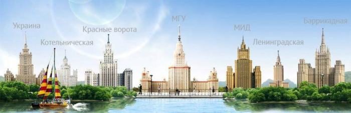 В 1947 году в честь 800-летнего юбилея столицы, по указанию Сталина, одновременно были заложены восемь огромных небоскребов (но возведено было семь из них). Все проекты утверждал лично Сталин.