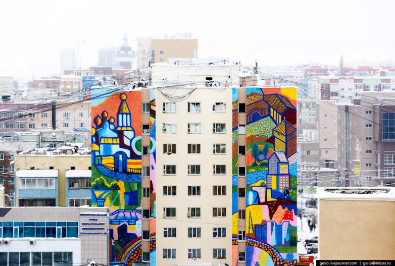 Летом 2016 года молодые якутские художники Кыыдаана Игнатьева и Андрей Степанов раскрасили четыре дома в Якутске на улицах Кирова и Ойунского. По словам авторов, их граффити-акция (согласованная, впрочем, с городскими властями) стала вкладом в борьбу с серостью и безликостью.