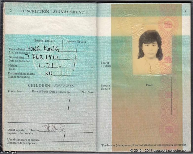 Его паспорт действовал до 30 июня 1997 года, а 1 июля китайское правительство снова получило контроль над Гонконгом. Это такой же синий паспорт, какие когда-то действовали в самой Великобритании.