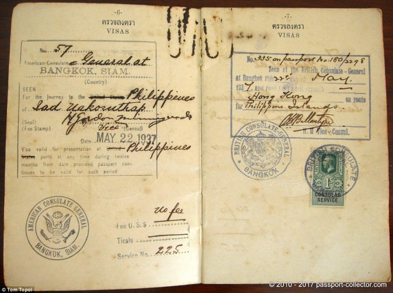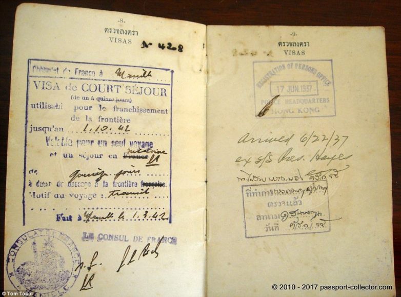 Тем не менее в этом паспорте мы видим надпись на французском. В 1939 году, через два года после выдачи этого документа, Сиам стал называться Таиландом.