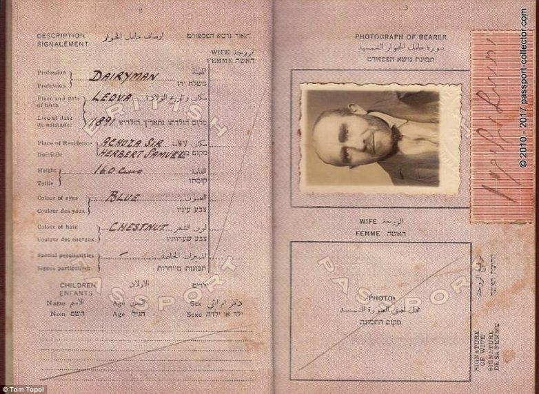 Это паспорт 1939 года, выданный Британской Палестиной. Его владелец, еврей, родом из города Леова в Молдавии. Молдавскую Советскую Социалистическую Республику нацисты атаковали в 1941 году, несмотря на пакт о ненападении 1939 года.