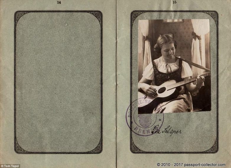 Этот документ — один из серии паспортов Бремена в коллекции Топола, который живет в Германии и специализируется на немецких паспортах, хотя собирает и другие. Его владелица, Софи Шапер, родилась в 1901 году и работала телефонным оператором. К сожалению для Софи, ее страну ждали сложные времена. В 1933 году Бремен как часть Германской империи оказался под контролем нацистов и впоследствии стал частью гитлеровского Третьего рейха.
