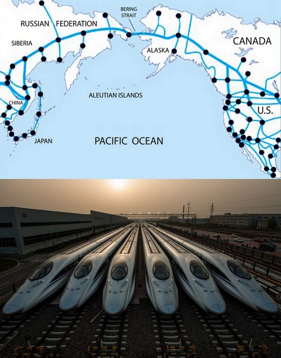 Китай планирует построить амбициозную железнодорожную линию протяженностью 21 000 километров, чтобы запустить сверхскоростные поезда в Америку через Россию. При этом пересечение Берингова пролива между Россией и Аляской предполагает строительство 200-километрового подводного туннеля под Тихим океаном.