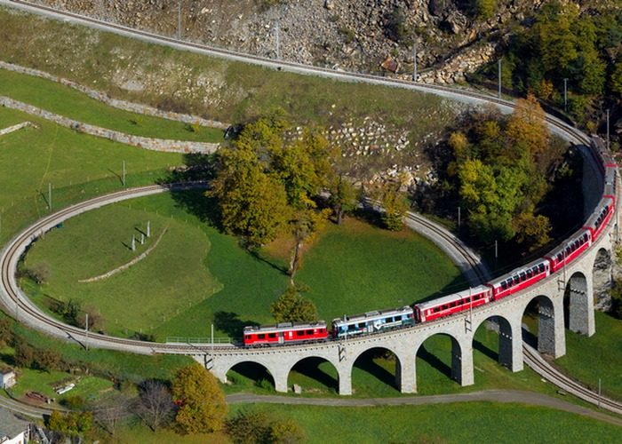 7. Поезд, проходящий по спиральному виадуку
