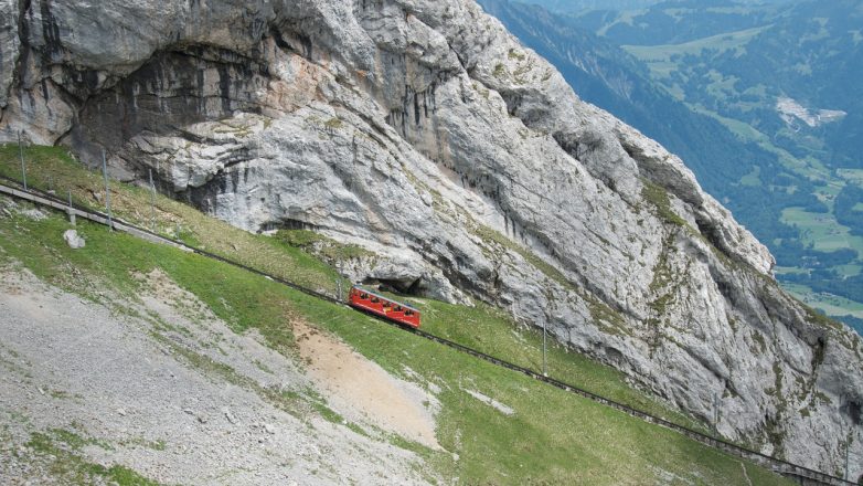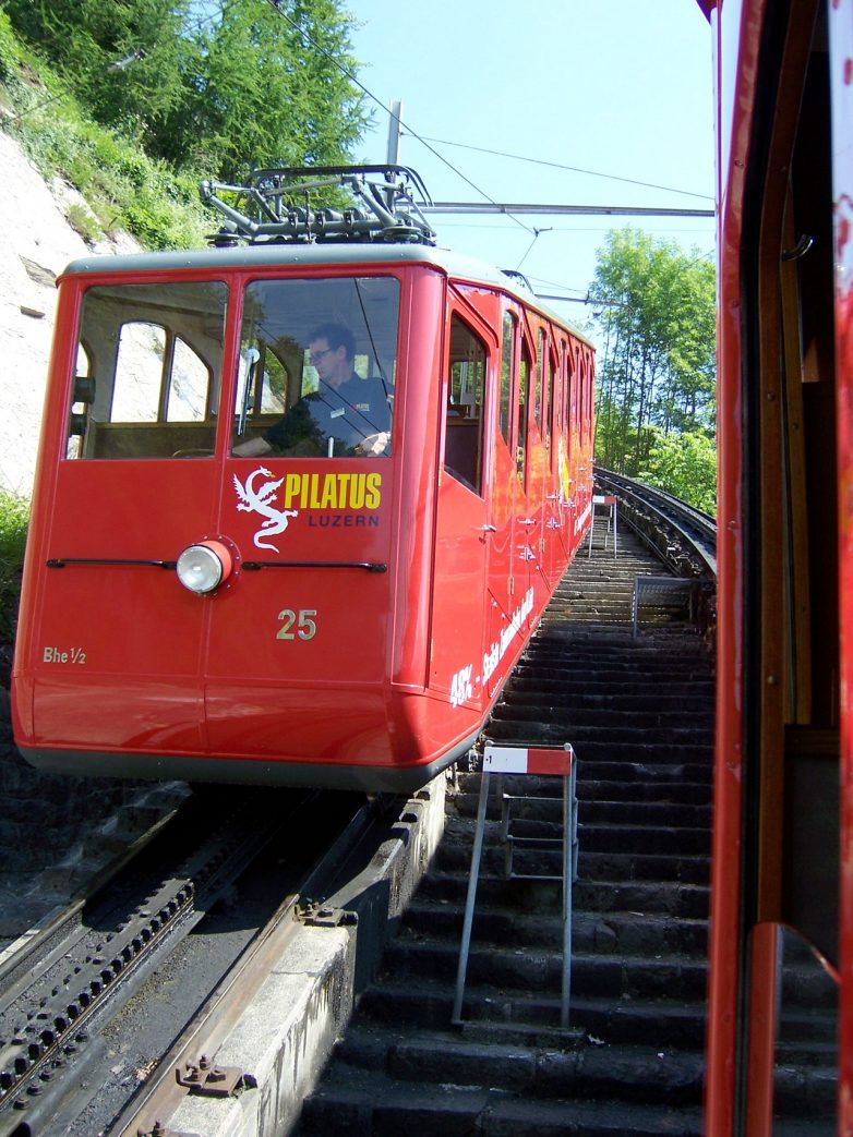 Пилатусбан считается самой крутой железной дорогой в мире. Весь маршрут от города Альпнахштадт до вершины горы Пилатус поезд проходит за полчаса, делая пару остановок по пути.