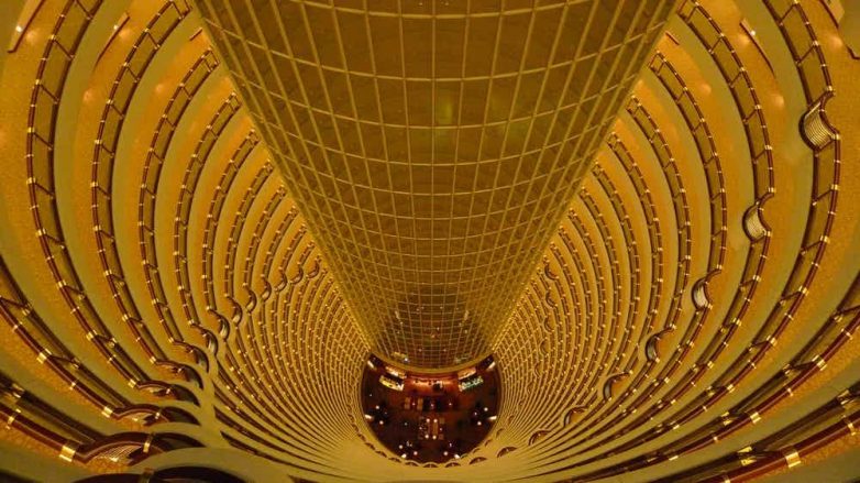 56 этажей, 555 номеров, обилие света и позолоты и структура здания, напоминающая какой-то сказочный лабиринт. У человека непривычного от блуждания по просторным коридором, которые плавно перетекают один в другой, выводя туристов то к наружной, то к внутренней стене здания, запросто закружится голова. Но главный аттракцион здесь – все-таки специальный желоб для белья, отправляющегося в прачечную – по нему несвежие простыни и скатерти со свистом летят с верхних этажей до подвала.