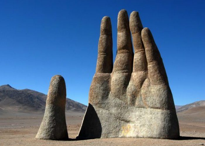 В 75 км от города Антофагасты находится главный рукотворный символ Атакамы – 11-метровая скульптура «Рука пустыни», установленная здесь в марте 1992 года. Скульптура изображает человеческую ладонь левой руки, возникающую из-под земли. Протянутые вверх пальцы производят впечатление о похороненном в песках великане, обращающемся за помощью к небу.