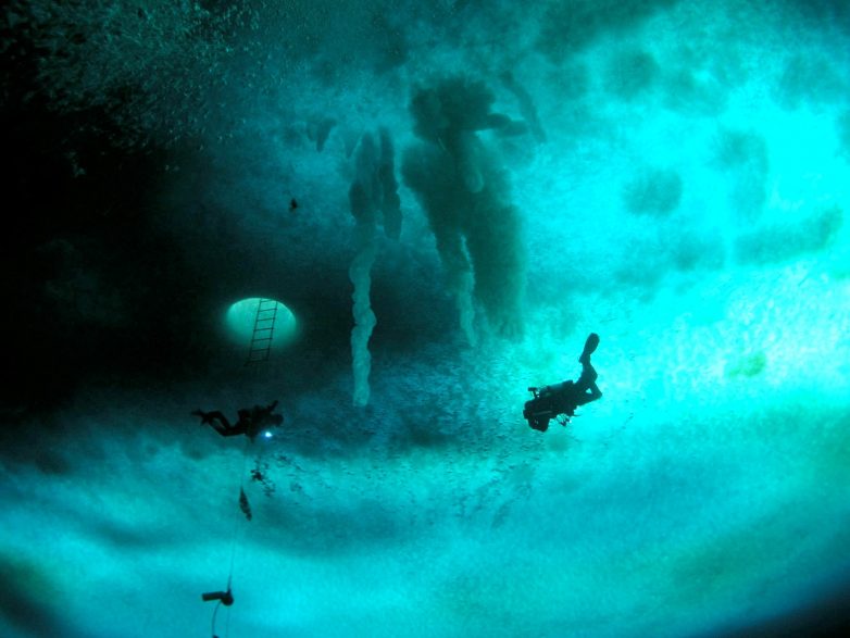 Дайверы-ученые проводят исследования подо льдом на Мысе Эванса.