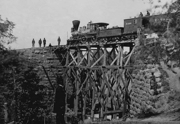 К тому времени, когда паровозы стали незаменимыми и популярными помощниками в транспортировке людей и грузов по всей стране, их использование для военных нужд стало вполне ожидаемым. Пришел черед солдат и тяжелой артиллерии, которых было крайне важно доставлять к пункту назначения в кратчайшие сроки. Когда в США разразилась гражданская война 1861 года, поезда стали настоящим спасением для обоих лагерей. Они помогали доставить в больницы раненых, привезти на поле боя новые отряды солдат и отправить домой тела погибших. Во время битвы при Чикамоге (Chickamauga, река) в сентябре 1863 года с помощью поездов союзным войскам удалось доставить на место сражения около 20 000 солдат, преодолев расстояние в 1900 километров всего за 11 дней. К сожалению, железные дороги были уязвимой целью и ключевым ресурсом в той войне, что спровоцировало множество диверсий с обеих сторон.