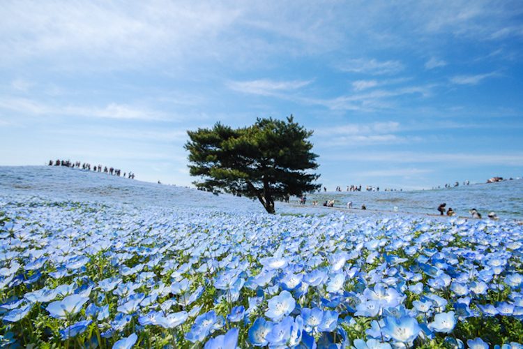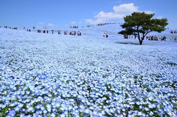 Фестиваль цветения сакуры хоть и является самым популярным в Японии, но далеко не единственным в своём роде. Каждую весну тысячи туристов стекаются в парк Hitachi Seaside Park в префектуре Ибараки, чтобы полюбоваться голубым ковром из более четырёх миллионов цветущих немофил.