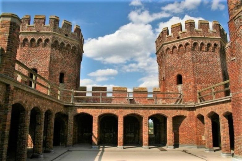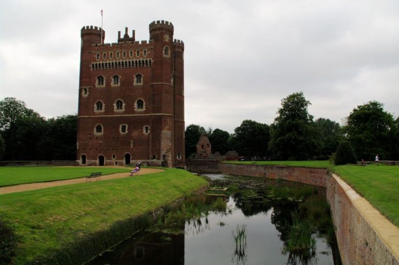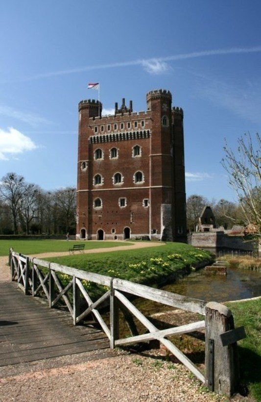 Средневековый замок Таттершелл в графстве Линкольншир, поднимается на пять этажей над городом, и хранит в себе великолепные гобелены и большие камины внутри затейливых кирпичных стен.