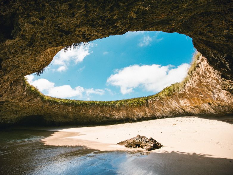 Несмотря на свой фантастический вид, Пляж любви, который известен также как Тайный пляж, вполне реален. Он находится к западу от Пуэрто-Валярта, внутри пещеры с огромной дырой посредине. Говорят, что этот уникальный пляж появился благодаря испытаниям мексиканским правительством бомб в 1900-х годах. Так или иначе Пляж любви — волшебное место, которое непременно стоит посетить.
