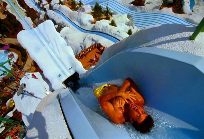 Говорят, что на этой водной горке можно испытать чувство свободного падения. А вообще, этот тематический аттракцион на зимнюю тематику считается одним из самых высоких и самых быстрых в мире.