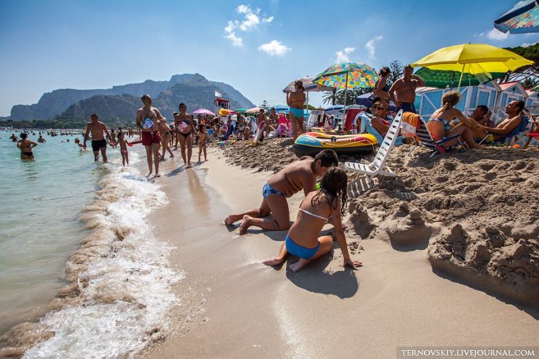 Самый лучший пляж в этих местах — Mondello, до которого из Палермо ехать минут 15 на машине на запад. В выходные тут просто ад, невозможно найти свободного места на песке!