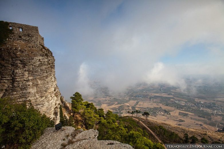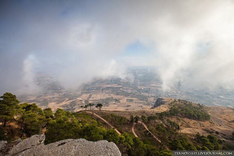 Рядом с Trapani есть потрясающее место — город-крепость в облаках — Erice. Влажные и холодные потоки облаков пролетают сквозь Erice, его жильцов и гостей в сторону живописной долины. Попасть в Erice можно на авто или с помощью подъемника, идущего из города Trapani: