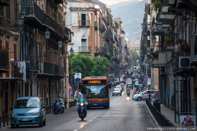 Начнем с Палермо — столицы Сицилии! Честно признаться, большие города здесь грязные и не очень уютные. В Палермо забавно устроено движение транспорта — на многих улицах общественный транспорт следует в оба направления, а для обычного дорога односторонняя!