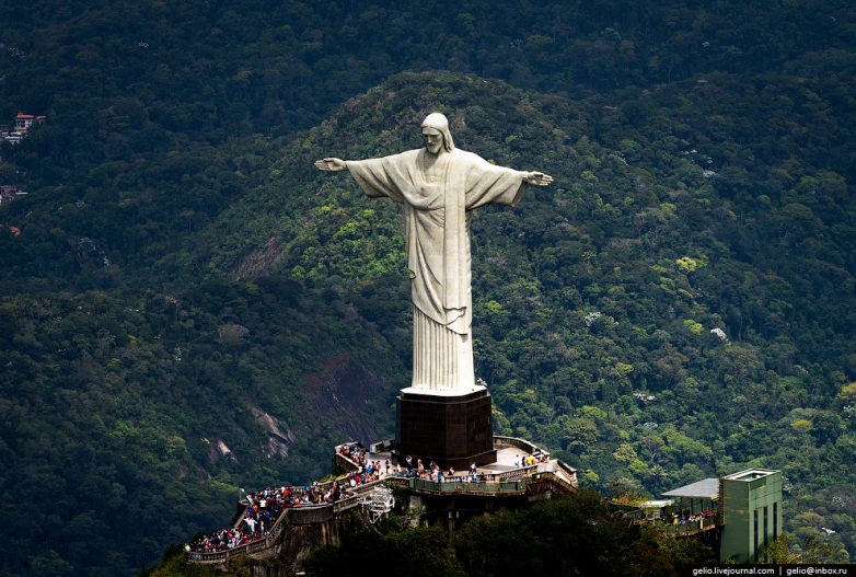 3. Статуя Христа-Искупителя расположена в национальном парке Тижука на вершине горы Корковаду. Высота скульптуры с постаментом — 38 метров, вес — 635 тонн, размах рук — 28 метров.