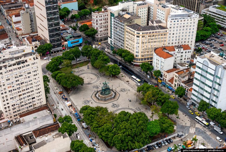 19. Сердце исторической части Рио-де-Жанейро — площадь Кариока. На заднем плане аэропорт Сантос-Дюмон.