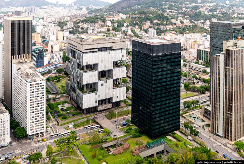 21. Штаб-квартира Petrobras — контролируемой государством крупнейшей в Бразилии и седьмой в мире нефтегазовой компании. Местные жители недолюбливают и называют «монстром» нестандартное 29-этажное серое строение из железобетона. Справа на фото — более привычных форм здание государственного национального банка развития.