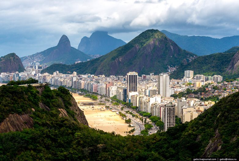46. Копакабана. Практически весь Рио-де-Жанейро расположен между холмов и гор.