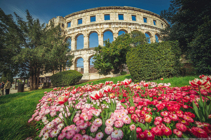 Амфитеатр Пулы, Хорватия — это единственная из сохранившихся арен, которая имеет 4 башни и все три римских архитектурных ордера, памятник древнеримской истории и архитектуры.
