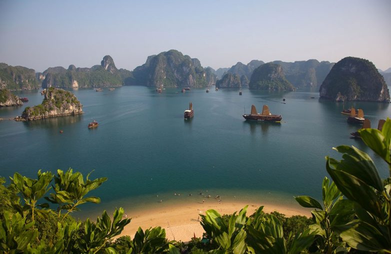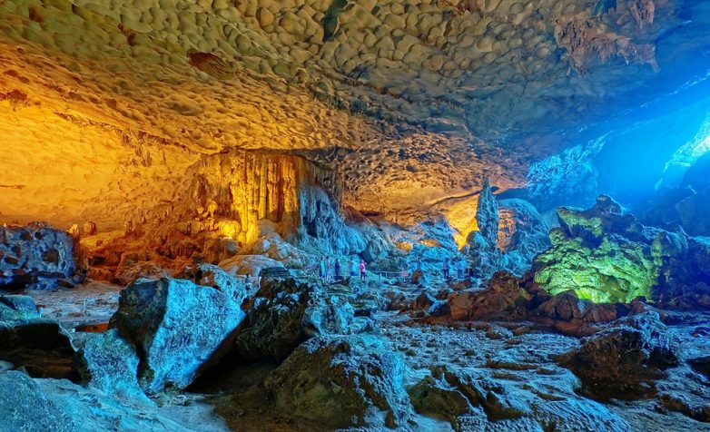 Известными пещерами в бухте Халонг являются грот Бонау, Девичье и Небесный Дворец.