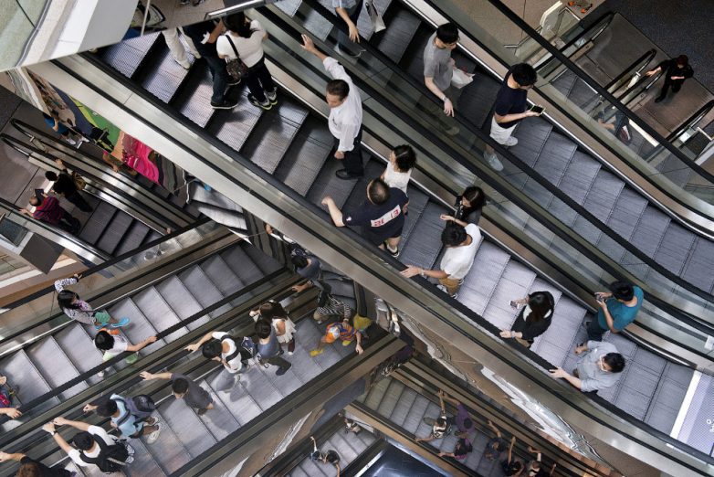 Бесконечные эскалаторы в торговом центре.