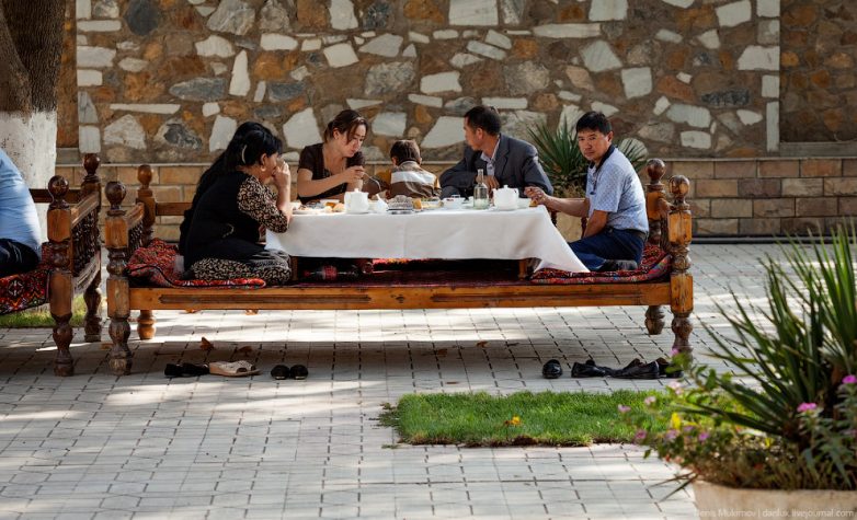 21. Среднеазиатские чайханы устроены совершенно непривычным для нас образом: все посетители сидят на топчанах. Очень удобная конструкция: поел плотно и не вставая с места отвалился вздремнуть на подушки.