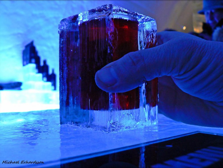 Весь отель сделан из снега и ледяных блоков, взятых из реки Турне-Эльв. Изо льда созданы даже детали интерьера, за исключением спальных мест.