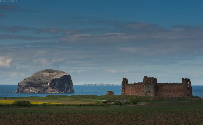 По дороге — удивительная скала Bass Rock, рядом с замком Tantallon!