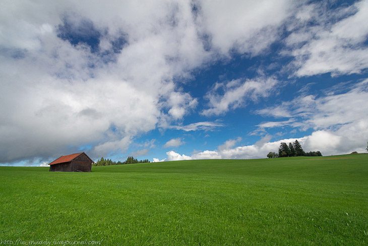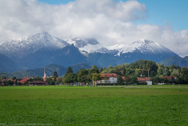 Овечки — это вообще отдельная смешная история. Мы ехали по дороге в сторону дома и на одном из лугов увидели овец. Картина маслом — огромный зелёный луг на фоне горы, и в одном «углу» этого луга кучка овец. Мы резко свернули к лугу, чтобы посмотреть на идеальных баварских овец. И когда эти овцы увидели нашу машину, остановившуюся у луга, они как сумасшедшие бросились бежать из своего «угла» к нам, в противоположный угол. Как смешно развивались при этом их уши! Мы смеялись до слёз! И всё это вместе с почти что ощутимым топотом копыт — это было нечто!!!