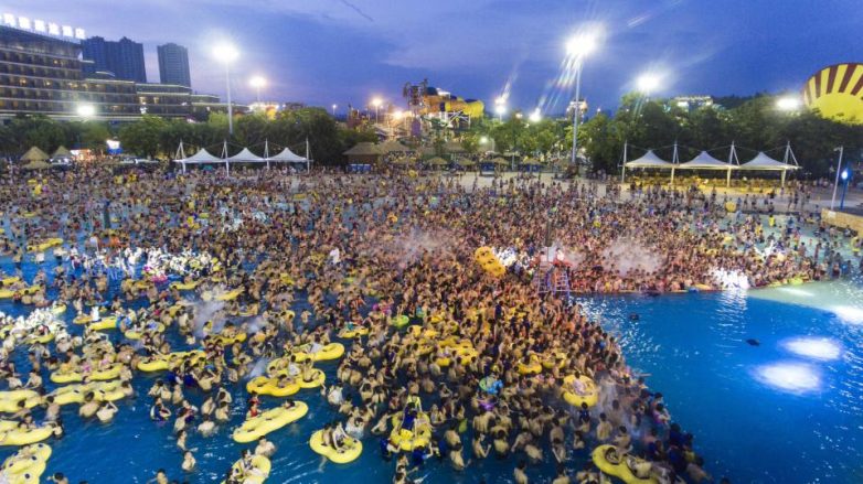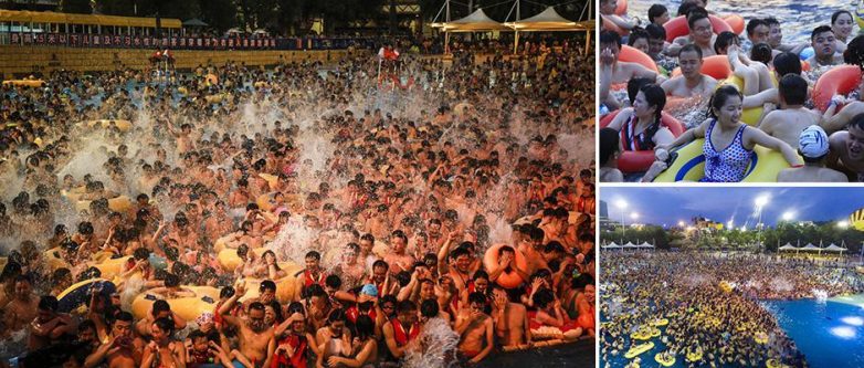 Сейчас во многих регионах Китая очень жаркая погода, температура воздуха достигает 50 градусов. Люди ищут спасение от летнего зноя в различных бассейнах и аквапарках. Там сейчас настоящий аншлаг, буквально яблоку негде упасть.